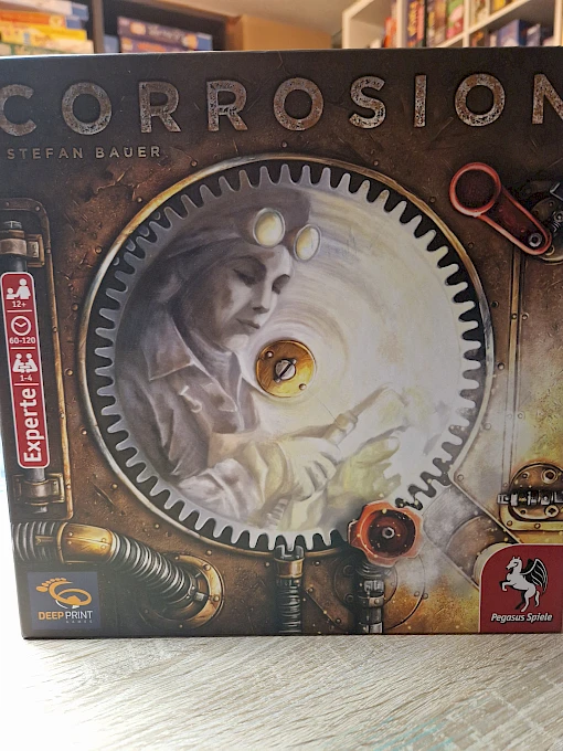 Lächelnd stehst Du im Zentrum deiner Werkhalle: Die süßen Töne von klirrendem Metall und rasselnden Maschinen erwärmen dein unternehmerisches Herz. Dein Ziel ist es, immer wieder neue Produktionskombinationen aufzubauen und die anderen Fabrikbetreibenden auszustechen. Deine größte Gegnerin ist allerdings die Zeit, da in der mit Wasserdampf gefüllten Luft deine Maschinen und Zahnräder ziemlich schnell verrostesn. Du solltest also zusehen, dass du auch ein paar rostfreie Chromzahnräder produzierst und sie in leistungsfäghigen Chrommaschinen verbaust. Um erfolgreich zu sein, musst du das Ausspielen deiner Ingenieurinnen und das Drehen deines Rostrads gut aufeinander abstimmen. Wem das am bestene gelingt, wird mit seinen Maschinen und Auszeichnungen die meisten Punkte uns damit den Sieg holen.