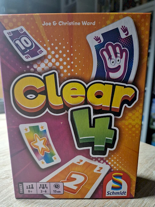 In diesem rasanten Kartenablegespiel musst du gleichhohe oder niedrigere Zahlen legen. Legst du 4 Gleiche, darfst du die Tischmitte leerräumen - CLEAR! - und neu ausspielen. So wirst du auch deine verdeckten Karten am besten los!