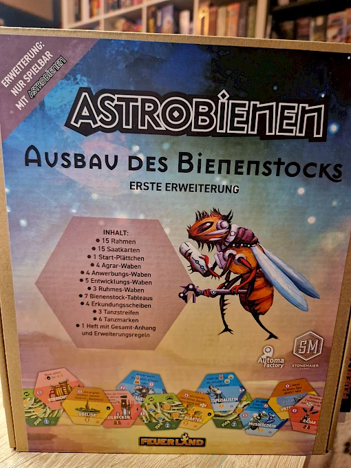 In Astrobienen kontrollierst du 1 von 20 einzigartigen Fraktionen. Deine Fraktion beginnt das Spiel mit mageren Vorräten: einem Bienenstock, wenigen Rohstoffen und Arbeitsbienen. Es erwarten dich Herausforderungen beim Einsatz deiner Arbeiterinnen und dem Ausbau des Bienenstocks. Außerdem solltest du Planeten erkunden, Rohstoffe sammeln, Technologien entwickeln und Ruhmeswaben bauen, welche die Stärken deiner Fraktion hervorheben. Der Mangel rückt allerdings schnell näher. Deine Arbeiterinnen können nur wenige Aktionen durchführen, bevor sie in den Tiefschlaf gehen müssen! Kannst du deine Fraktion gedeihen lassen oder wird sie nur knapp überleben?