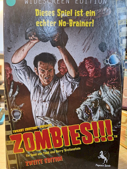 Zombies!!! wirft dich mitten ins Geschehen - denn es gilt, den unaufhaltsam nahenden Zombiehorden zu entfliehen! Du musst dich einer Mischung aus Grips und Gewalt bedienen, um als Erster den rettenden Hubschraubere zu erreichen. Leider sind die hungrigen Zombies überall, und deine Mitspieler würden es sicher bevorzugen, wenn du an ihrer Stelle ins Gras beißt.