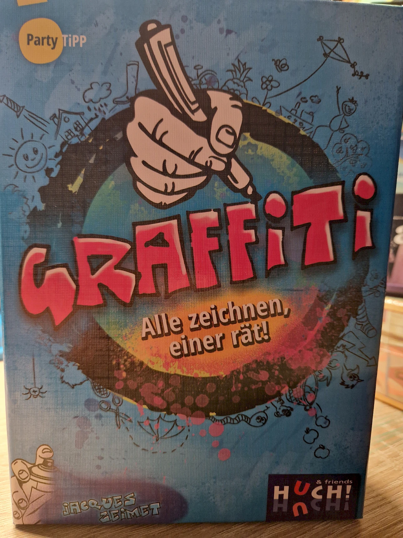 Na klar: eine Krokodilsträne! Bei Graffiti zeichnen alle gleichzeitig und einer rät, was gemalt wurde! Wer setzt einen Begriff am originellsten um? Wer hat den schönsten Strich? Welches Motiv ist einmalig? und wer errät, was die Mitspieler gepinselt haben? Wer am Ende die meisten Punkte hat, gewinnt das witzige Spiel!