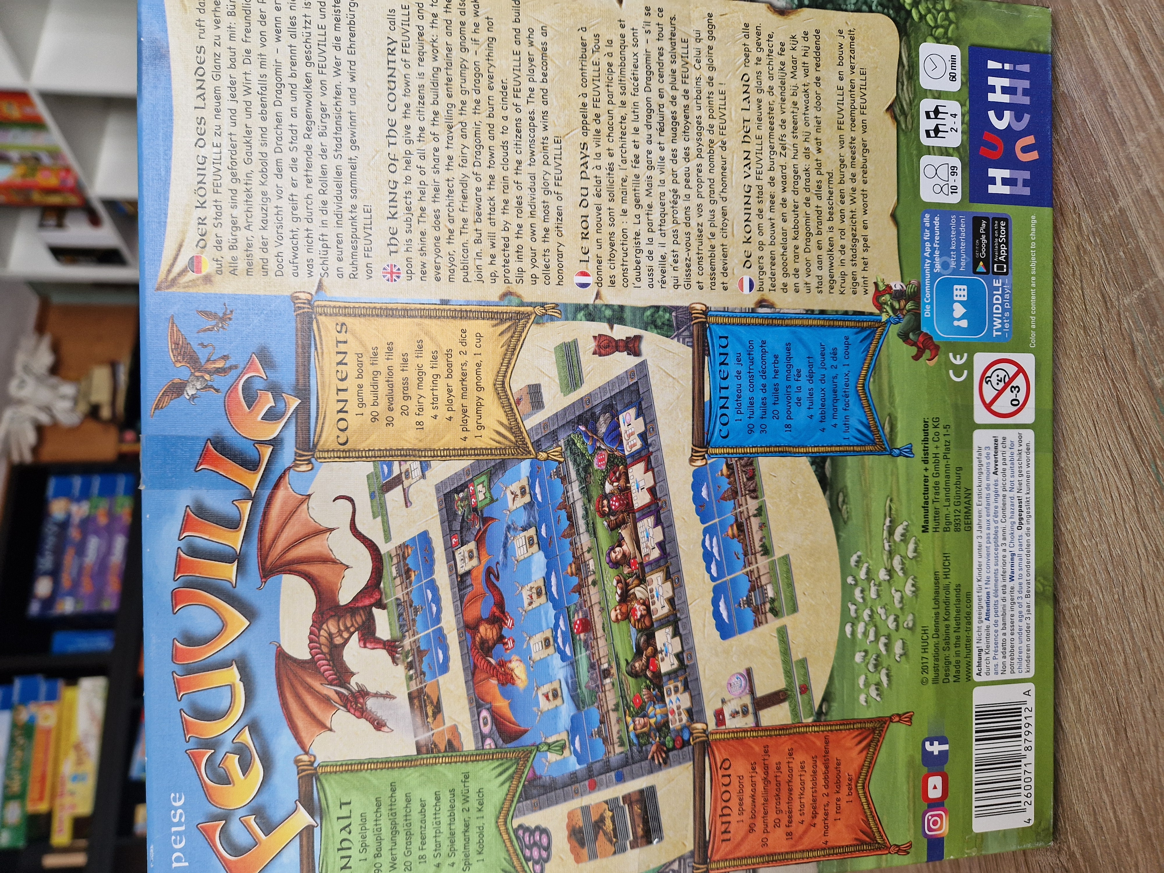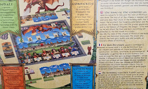Der König des Landes ruft dazu auf, der Stadt Feuville zu neuem Glanz zu verhelfen. Alle Bürger sind gefordert und jeder baut mit: Bürgermeister, Architektin, Gaukler und Wirt. Die freundliche Fee und der kauzige Kobold sind ebenfalls mit von der Partie. Doch Vorsicht vor dem Drachen Dragomir - wenn er aufwacht, greift er die Stadt an und brennt alles nieder, was nicht durch rettende Regenwolken geschützt ist. Schlüpft in die Rollen der Bürger von Feuville und baut an euren individuellen Stadtansichten. Wer die meisten Ruhmespunkte sammelt, gewinnt und wird Ehrenbürger von Feuville!