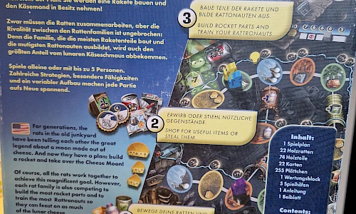 Zwar müssen die Ratten zusammenarbeiten, aber die Rivalität zwischen den Rattenfamilien ist ungebrochen: Denn die Familie, die die meisten Raketenteile baut und die mutigsten Rattonauten ausbildet, wird auch den größten Anteil vom lunaren Käseschmaus abbekommen.