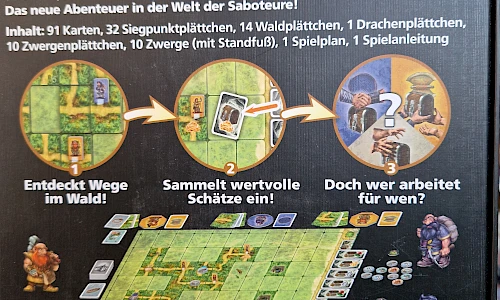 An der anderen Seite des alten Waldes befinden sich die vergessenen Minen. Begebt euch mit euren Zwergen-Clans auf die Suche und überwindet gemeinsam Hindernisse, entkommt Fallen und Trollen - und vor allem: Findet die wertvollen Schätze. Doch Vorsicht! Nehmt euch vor dem Drachen in Acht und seid wachsam, denn vielleicht arbeiten Mitglieder eures Clans gegen euch.