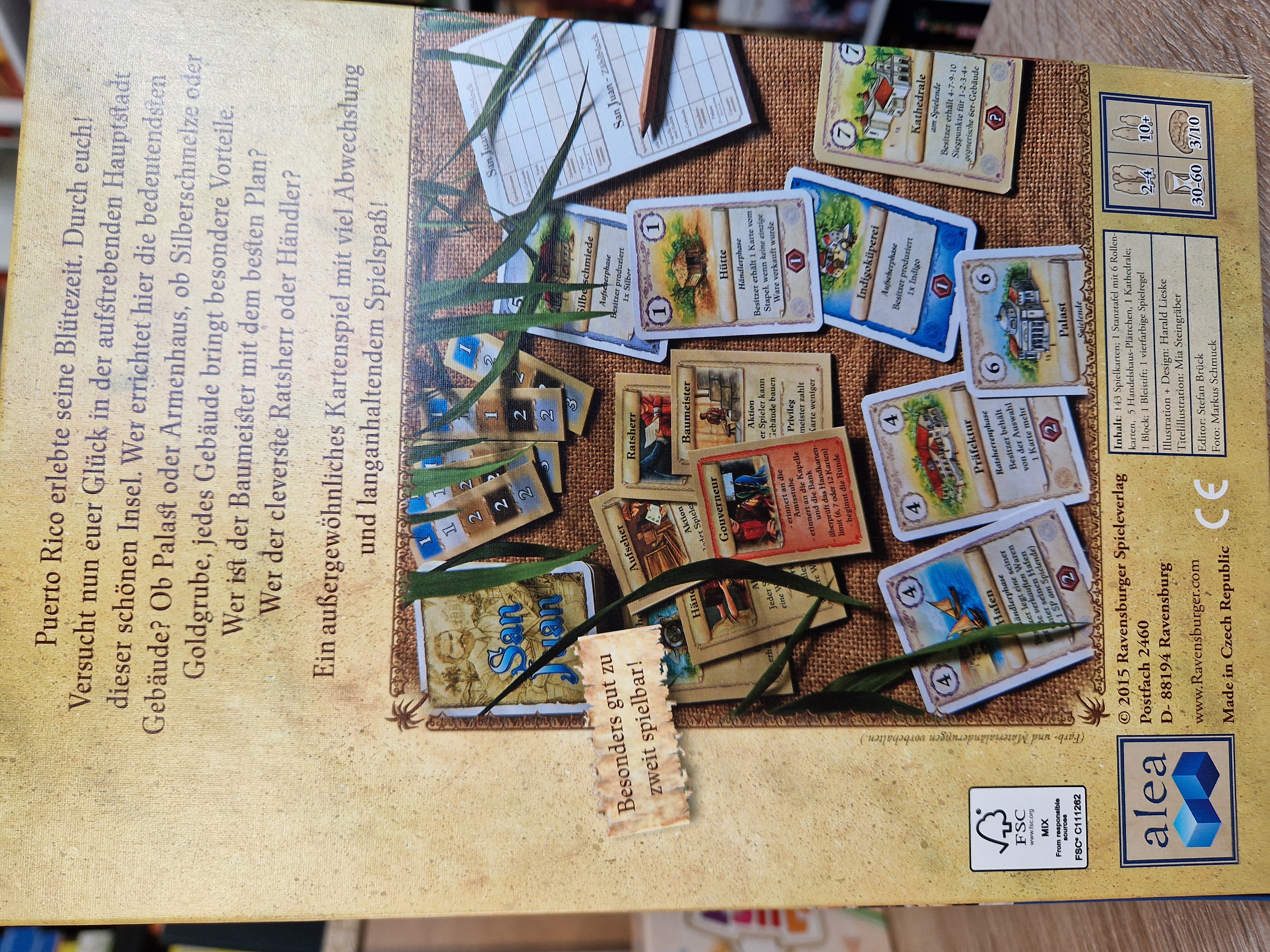 Puerto Rico erlebte seine Blütezeit. Duch euch! Versucht nun euer Glück in der aufstrebenden Hauptstadt dieser schönen Insel. Wer errichtet hier die bedeutensden Gebäude? Ob Palast oder Armenhaus, ob Silberschmelze oder Goldgrube, jede Gebäude bringt besondere Vorteile. Wer ist der Baumeister mit dem besten Plan? Wer der cleverste Ratherr oder Händler?