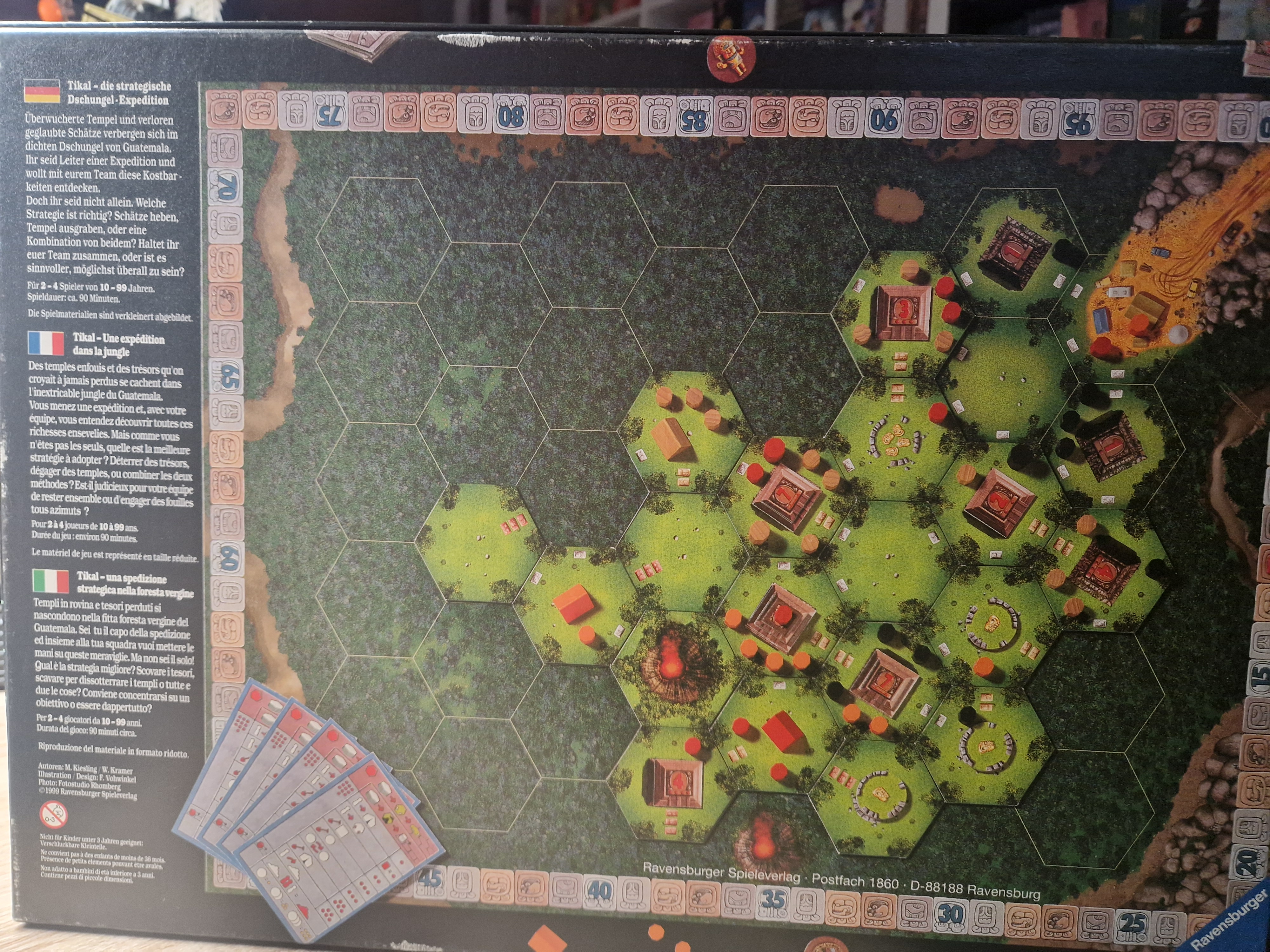 Überwucherte Tempel und verloren geglaubte Schätze verbergen sich im dichten Dschungel von Guatemala. Ihr seid Leiter einer Expedition und wollt mir eurem Team diese Kostbarkeiten entdecken. Doch ihr seid nicht allein. Welche Strategie ist richtig? Schätze heben, Tempel ausgraben, oder eine Kombination von beidem? Haltet ihr euer Team zusammen, oder ist es sinnvoller, möglichst überall zu sein?