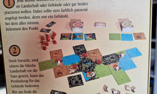 1 Jede Runde können sie frei entscheiden, ob sie Landschaft oder Gebäude oder gar beides platzieren wollen. Dabei sollte stets farblich passend angelegt werden, denn nur ein Gebäude bei dem alles stimmt bekommt den Punkt.