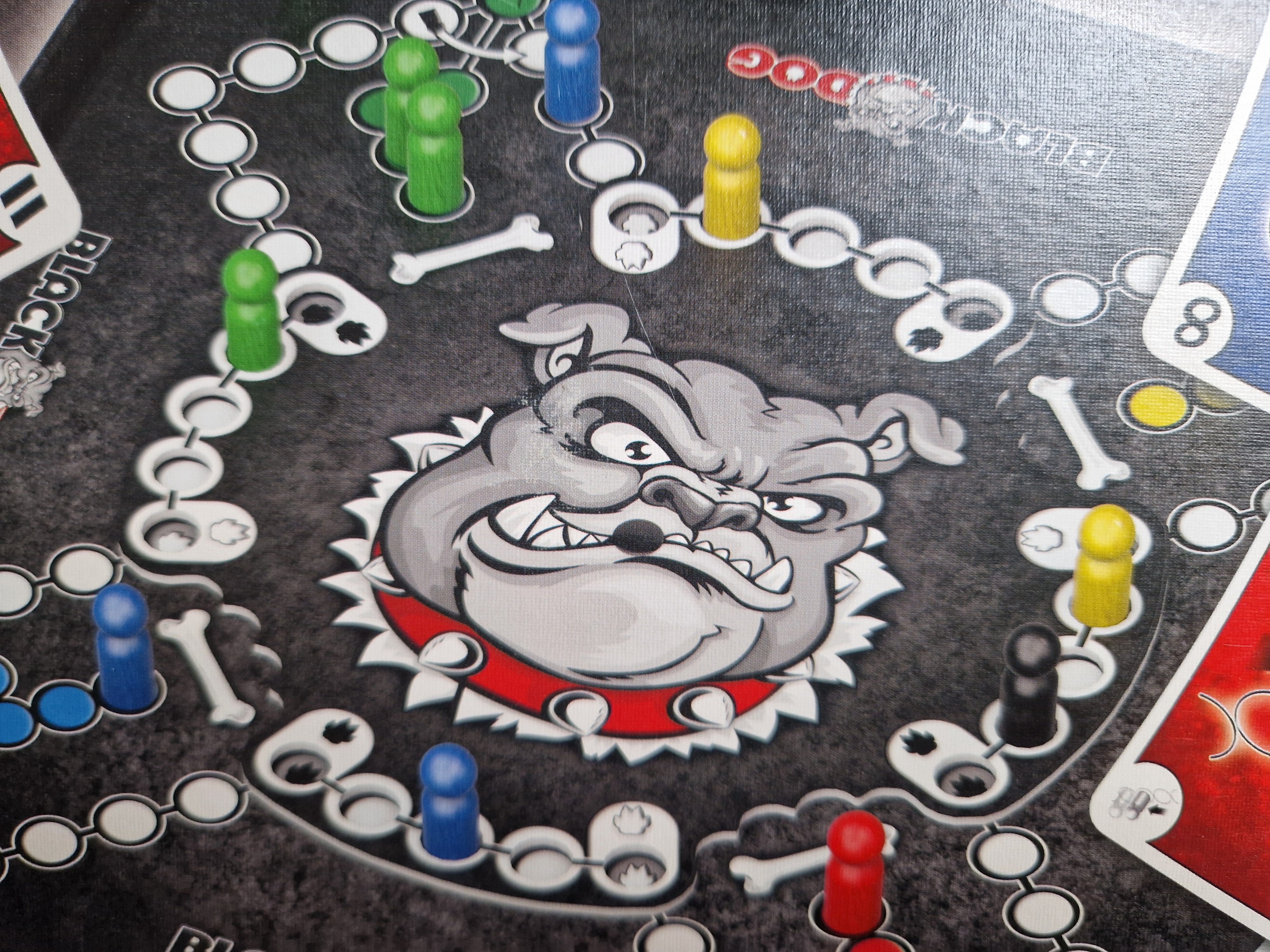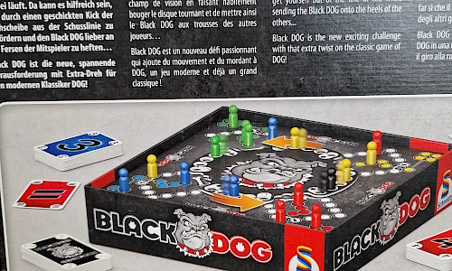 Black Dog ist das Spiel mit dem besonderen Dreh! alles dreht sich nämlich um den schwarzen Hund. Denn dieser beißt alle Figuren, an denen er vorbei läuft. Da kann es hilfreich sein, sich durch einen geschickten Kick der Drehscheibe aus der Schusslinie zu befördern und den Black Dog lieber an die Fersen der Mitspieler zu heften...