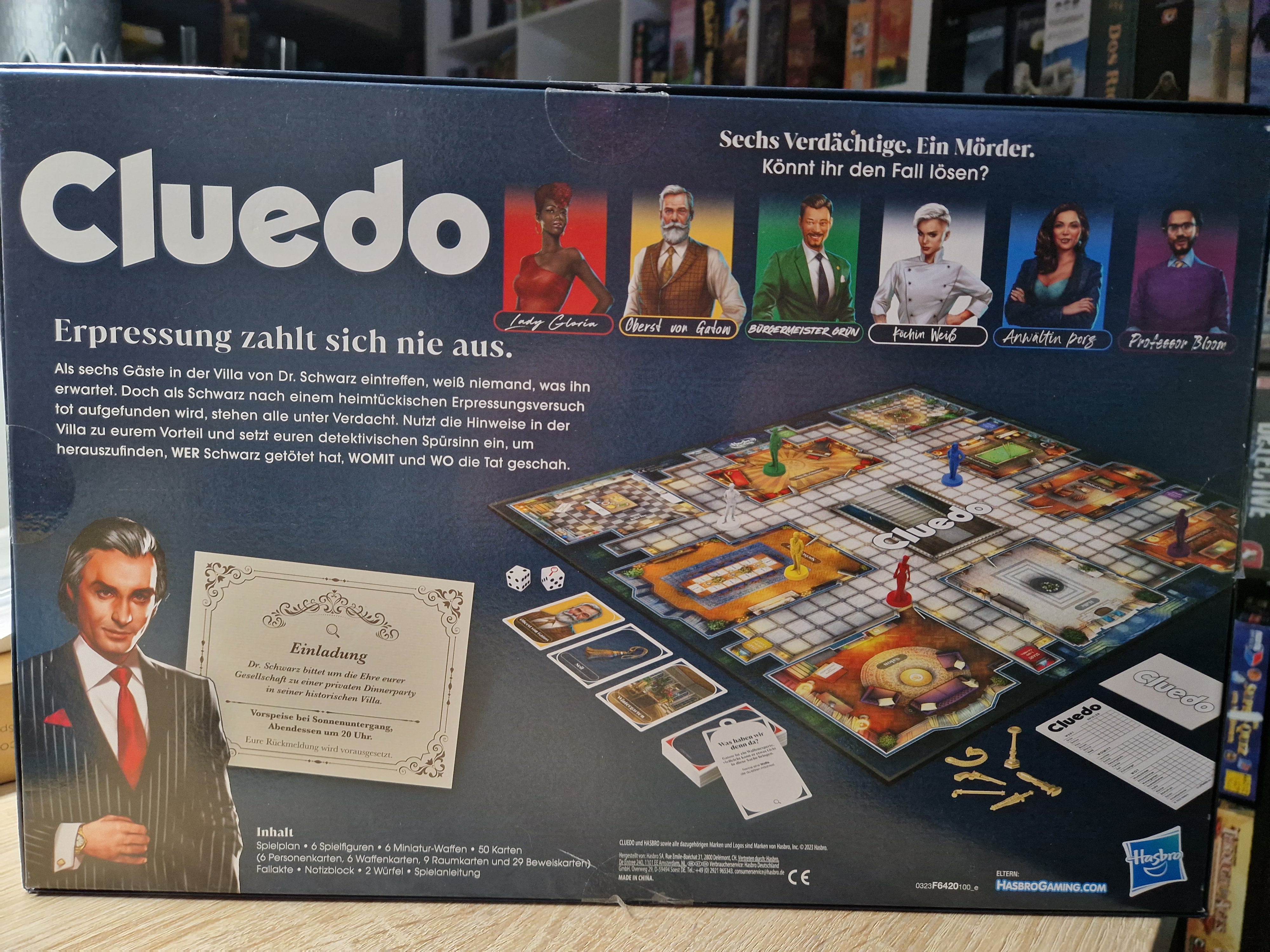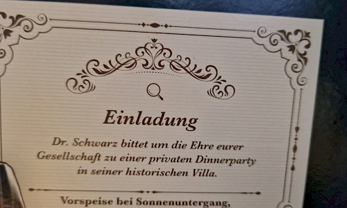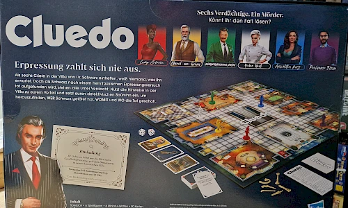 Als sechs Gäste in der Villa von Dr. Schwarz eintreffen, weiß niemand, was ihn erwartet. Doch als Schwarz nach einem heimtükischen Erpressungsversuch tot aufgefunden wir, stehen alle unter Verdacht. Nutzt die Hinweise in der Villa zu eurem Vorteil und setzt euren detektivischen Spürsinn ein, um herauszufinden, WER Schwarz getötet hat, WOMIT und WO die Tat geschah.