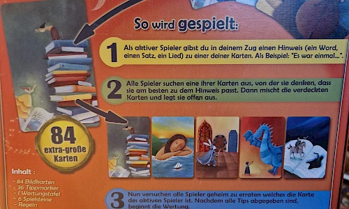 2 Alle Spieler suchen eine ihrer Karten aus, von der sie denken, dass sie am besten zu dem Hinweis passt. Dann mischt die verdeckten Karten und legt sie offen aus.