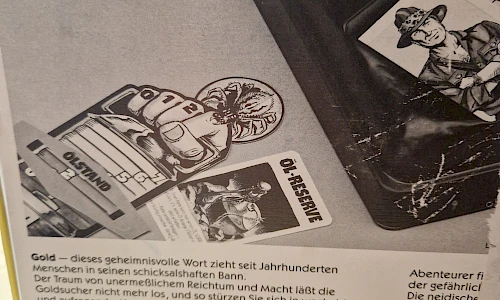 GOLD - dieses geheimnisvolle Wort zieht seit Jahrhunderten Menschen in seinen schicksalhaften Bann. Der Traum von untermeßlichem Reichtum und Macht läßt die Goldsucher nicht mehr los, und so stürzen sie sich in waghalsige und aufregende Abenteuer. Eine geheimnisumwitterte Höhle wird zum Schauplatz dieses fazinierenden, dreidimensionalen Spiels. Die Spieler schlüpfen in die Rolle von Abenteurern und dringen auf der Suche nach dem verborgenen Gold in das Innere der Höhle vor. Gut ausgerüstet mit Laterne und Spitzhacke findet man seinen Weg und ist endlich am Ziel - 6 Goldnuggets muss jeder Abenteuerer finden.
