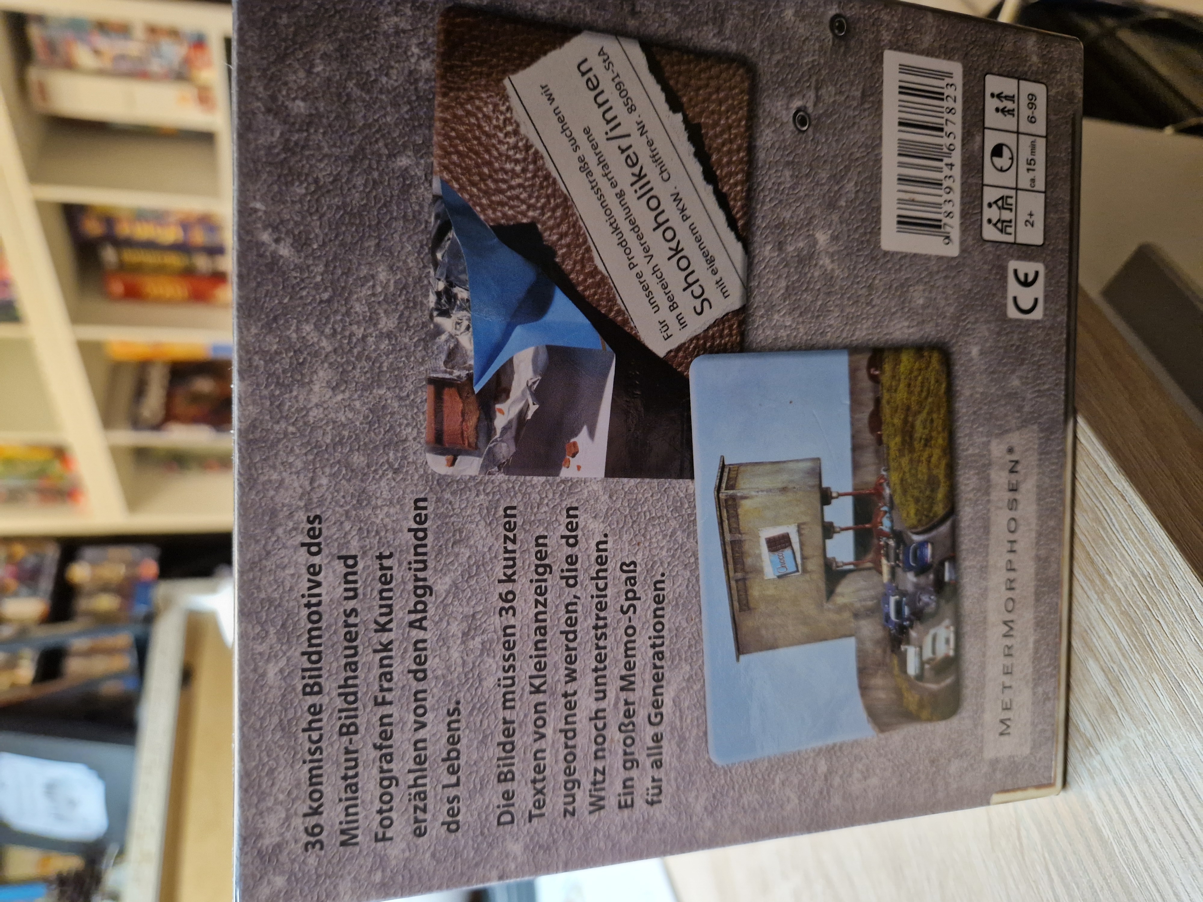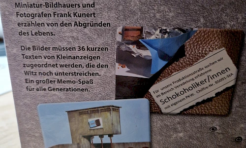 Die Bilder müssen 36 kurzen Texten von Kleinanzeigen zugeordnet werden, die den Witz noch unterstreichen. Ein großer Memo-Spaß für alle Generationen.
