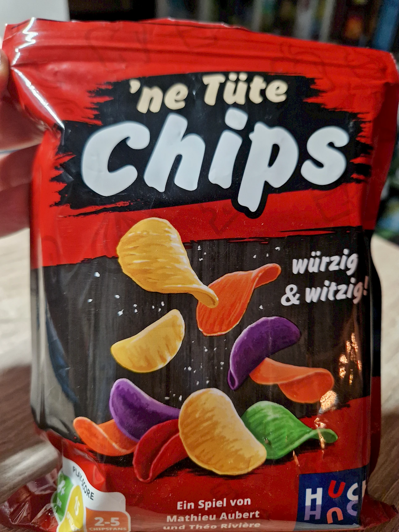 `ne Tüte Chips ist ein einfaches Familienspiel, bei dem du kniffelige Entscheidungen treffen musst um am Ende jeder Runde so viele Punkte wie möglich zu erzielen. Aber sei vorsichtig, denn wenn du zu gierig bist, kannst du viel verlieren!