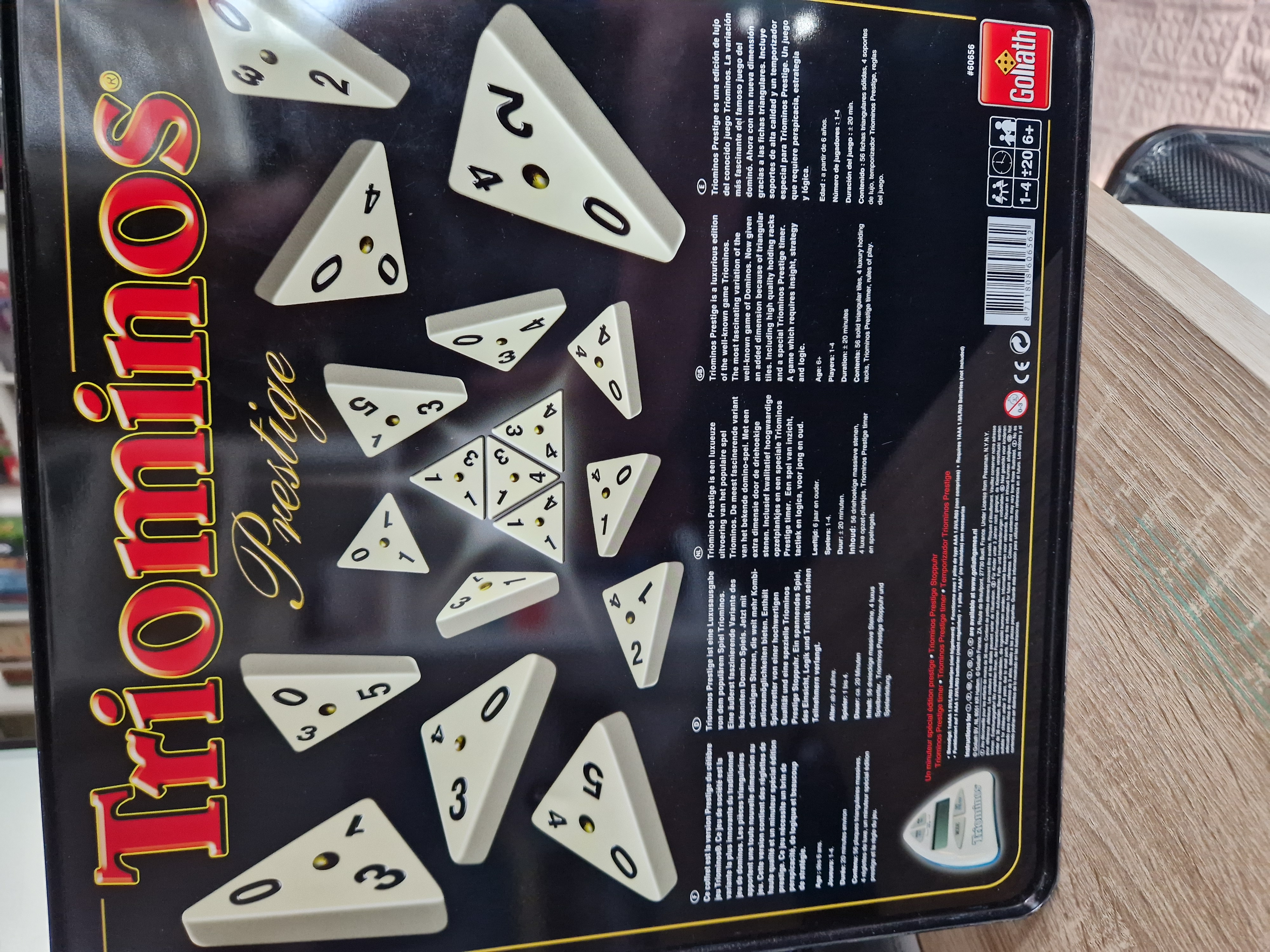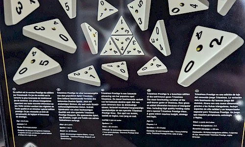 Triominos Prestige ist eine Luxusausgabe von dem populären Spiel Triominos. Eine äußert fazinierende Variante des bekannten Domino Spiel. Jetzt mit dreieckigen Steinen, die weitmehr Kombinationsmöglichkeiten bieten. Enthält Spielbretter von einer hochwertigen Qualität und eine spezielle Triominos Prestige Stoppuhr. Ein spannendes Spiel, das Einsicht, Logik und Taktik von seinen Teilnehmern verlangt.