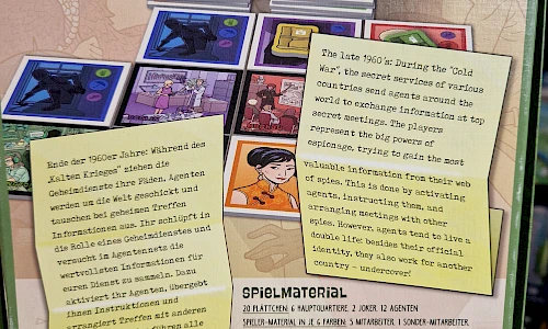 Ender der 1960er Jahre: Während des "Kalten Krieges" ziehen die Geheimdienste ihre Fäden, Agenten werden um die Welt geschickt und tausche bei geheimen Treffen Informationen aus. Ihr schlüpft in die Rolle eines Geheimdienstes und versucht im Agentennetz die wertvollsten Informationen für euren Dienst zu sammeln. Dazu aktiviert ihr Agenten, übergebt ihnen Instruktionen und arrangiert Treffen mit anderen Agenten. Ausserdem führen alle Agenten ein gefährliches Doppelleben: neben ihrer offiziellen Identität arbeiten sie auch für ein weiteres Land - undercover!