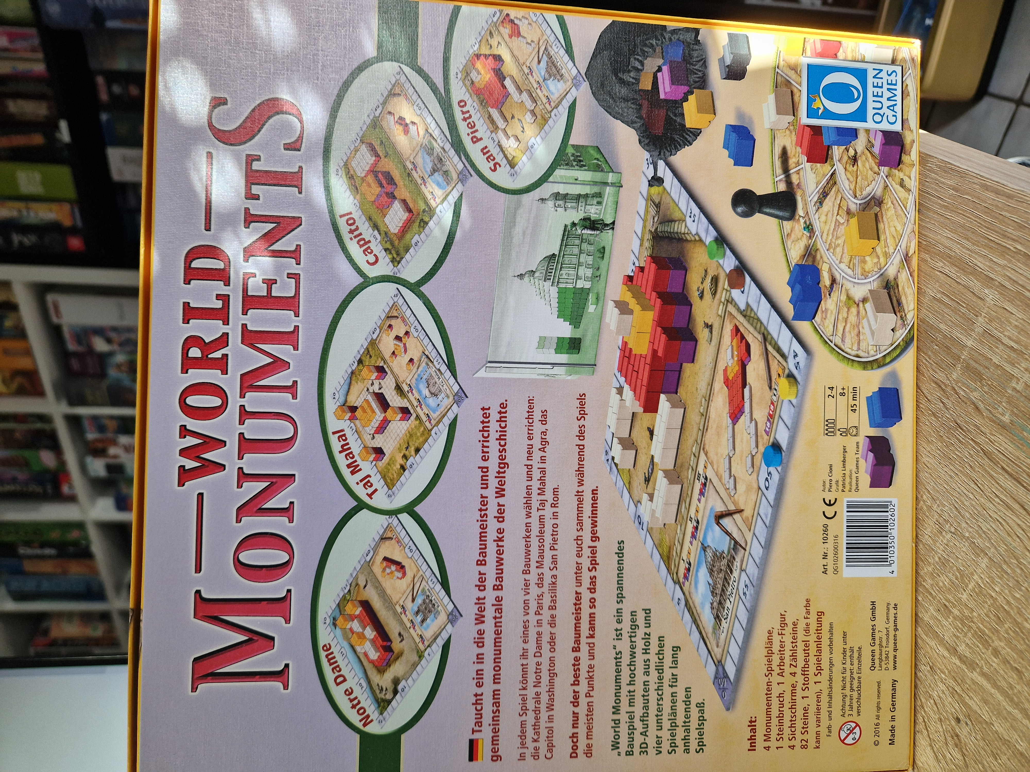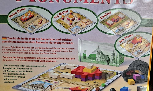 "World Monuments" ist ein spannendes Bauspiel mit hochwertien 3D-Aufbauten aus Holz und vier unterschiedlichen Spielplänen für lang anhaltenden Spielspaß.