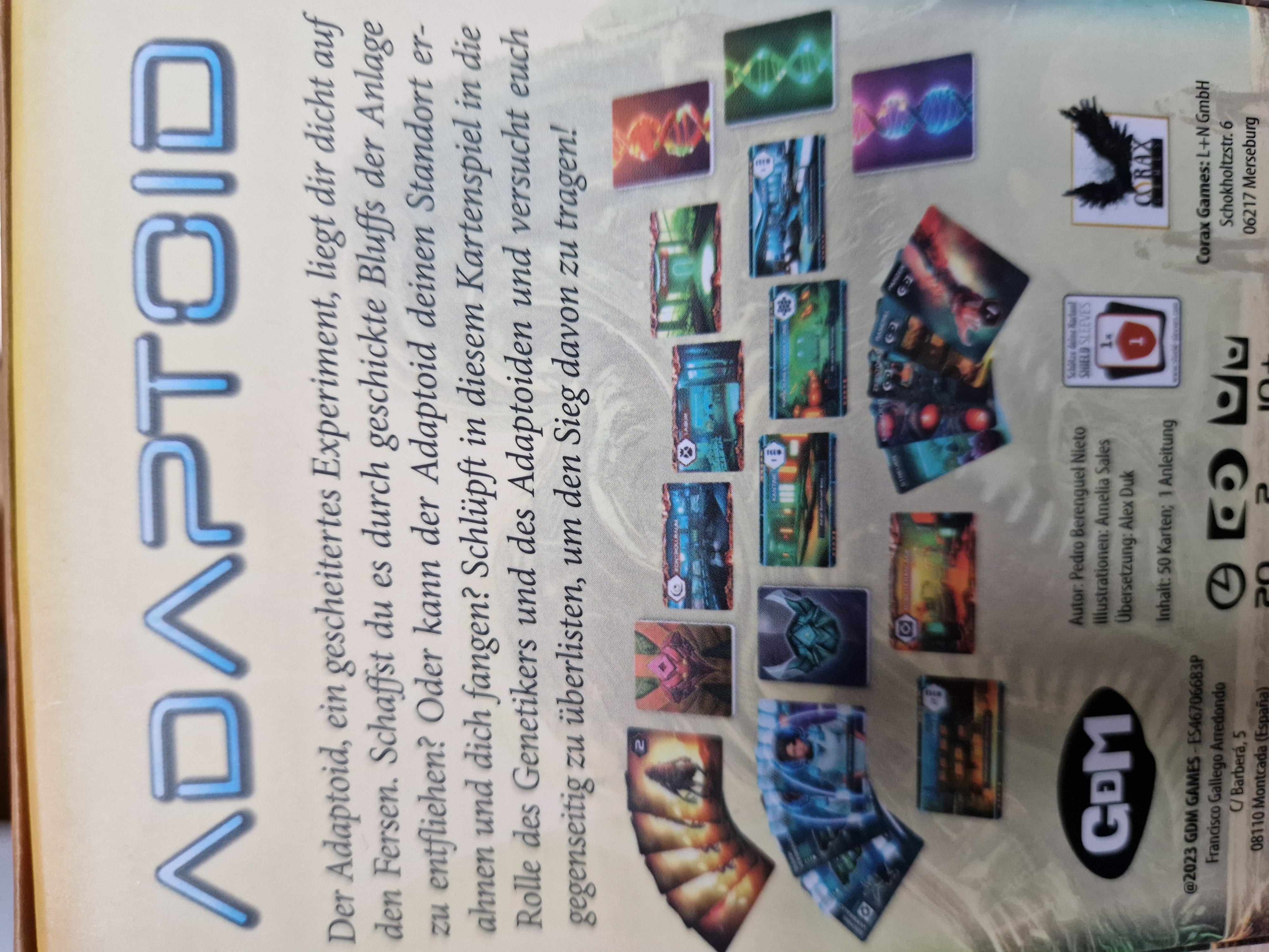 Der Adaptoid, ein gescheitertes Experiment, liegt dir dicht auf den Fersen. Schaffst du es durch geschickte Bluffs der Anlage zu entfliehen? Oder kann der Adaptoid deinen Standort erahnen und dich fangen? Schlüpft in diesem Kartenspiel in die Rolle des Genetikers und des Adaptoiden und versucht euch gegenseitig zu überlisten, um den Sieg davon zu tragen!
