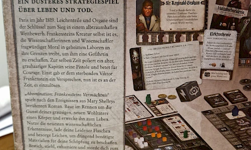 "Abomination: Frankensteins Vermächtnis" spielt nach den Ereignissen aus Mary Shellys berühmten Roman. Baue im Rennen um die Gunst deines grausigen, neuen Wohltäters einen Körper und erwecke ihn zum Leben. Nutze die neuesten wissenschaftlichen Erkenntnisse, lade deine Leidener Flaschen und besorge Leichen, um dringend benötigte Materialien für deine Schöspfung zu beschaffen. Bestich, stiehl, exhumiere und morde dich zum Sieg. Frankensteins Kreatur beobachtet dich - und sie duldet kein Versagen.
