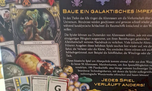 Dieses klassische Spiel um Alienpolitik kommt einmal mehr aus dem Warp zurück. Es bietet 50 Alienrassen, Manöverkarten, um ihre Spezialfähigkeiten zu verstärken. 100 Plastikschiffe, eine Menge weiterer hochwertiger Teile und brandneue Technologiekarten, mit denen die Spieler außergewöhnliche technologische Wunderwerke erforschen und bauen können!