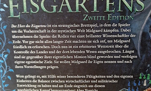 ...ist ein strategisches Brettspiel, in dem die Spieler um die Vorherrschaft in der mystischen Welt Midgaard kämpfen. Dabei übernehmen die Spieler die Rollen vier einst brillianter Wissenschaftler der Erde. Vor gar nicht allzu langer Zeit machten sie sich auf, um Midgaard friedlich zu erforschen. Doch nun ist ein verbitterter Wettstreit über die Kontrolle des Landes un der dort lebenden Wesen ausgebrochen. Längst sind sie gegenüber ihrer eigentlichen Mission blind geworden und verfolgen eigene egoistische Ziele. Sie wollen Midgaard ihr Eigen nennen und nach ihren Vorstellungen prägen.