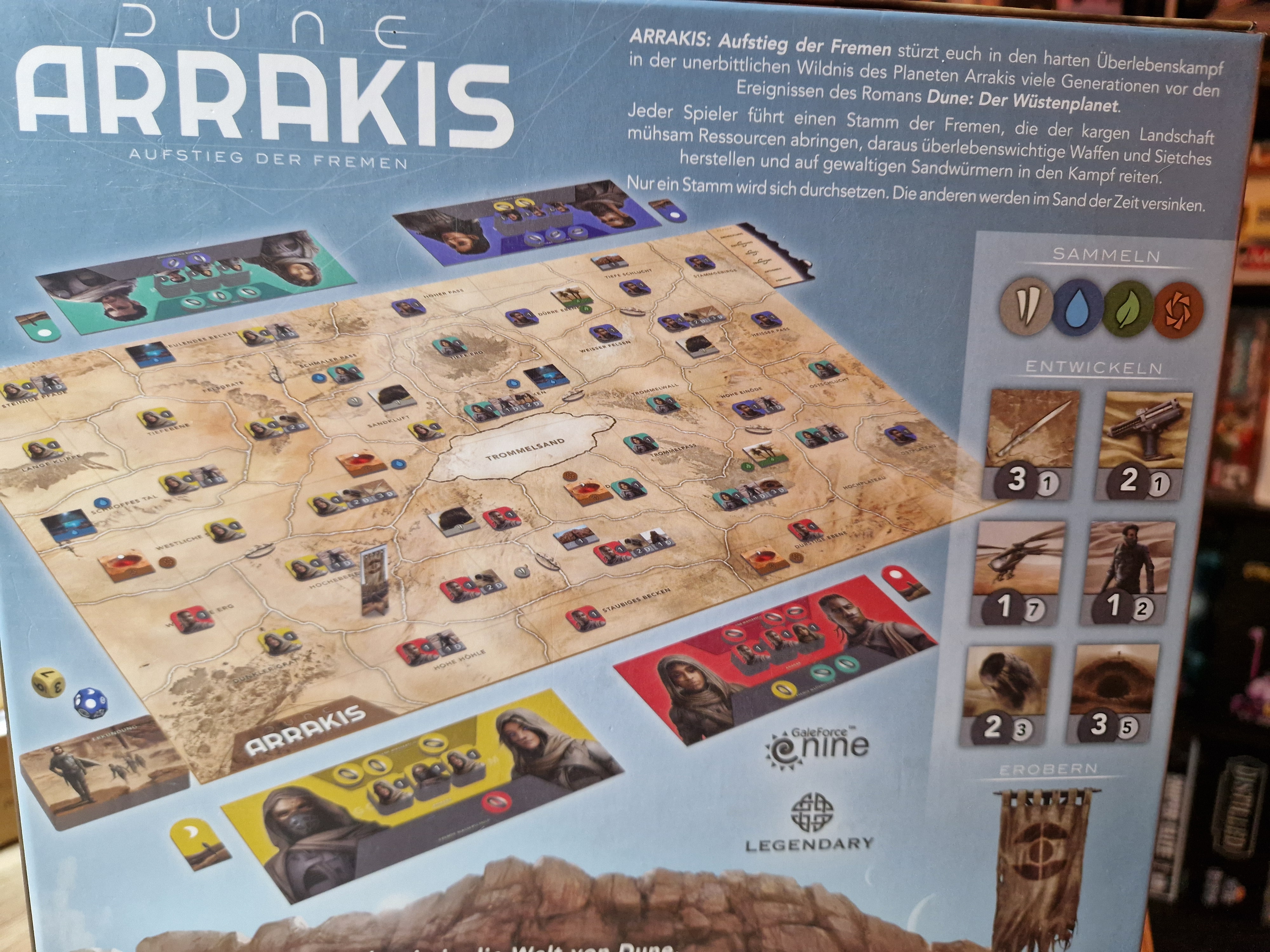 Jeder Spieler führt einen Stamm der Fremen, die der kargen Landschaft mühsam Ressourcen abringen, daraus überlebenswichtige Waffen und Sietches herstellen und auf gewaltigen Sandwürmern in den Kampf reiten. Nur ein Stamm wird sich durchsetzen. Die anderen werden in Sand der Zeit versinken.