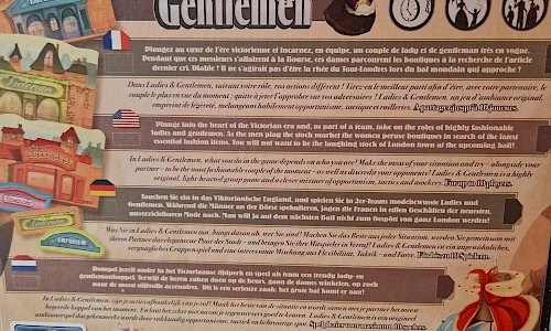 Was sie in Ladies & Gentlemen tun, hängt davon ab, wer sie sind! Machen sie das Beste aus jeder Situation, werden sie gemeinsam mit ihrem Partner das eleganteste Paar der Stadt - und bringen sie ihre Mitspieler in Verruf! Ladies & Gentlemen ist ein ungewöhnliches, vergnügliches Gruppenspiel und eine interessante Mischung aus Flexibilität, Taktik - und Farce.