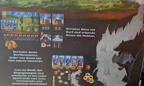 Errichte Oben ein Dorf und erkunde Unten die Höhlen.