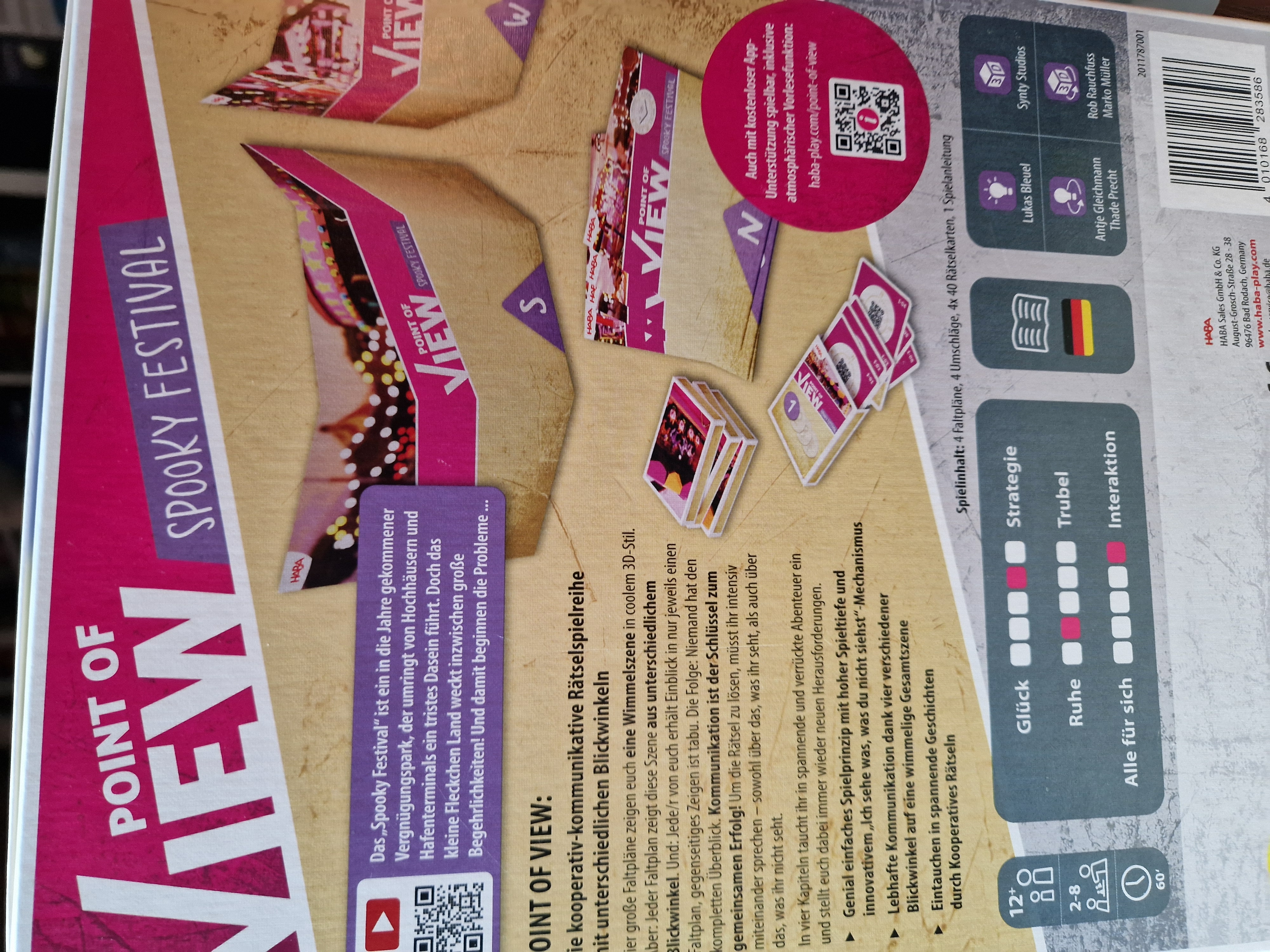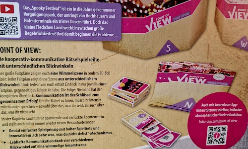 Vier große Faltpläne zeigen euch eine Wimmelszene in coolem 3D-Stil. Aber: Jeder Faltplan zeigt diese Szene aus unterschiedlichem Blickwinkel. Und: Jede/r von euch erhält Einblick in nur jeweils einen Faltplan, gegenseitiges zeigen ist tabu. Die Folge: Niemand hat den kompletten Überblick. Kommunikation ist der Schlüssel zum gemeinsamen Erfolg! Um die Rätsel zu lösen, müsste ihr intensiv miteinander sprechen - sowohl über das, was ihr seht, als auch über das, was ihr nicht seht.