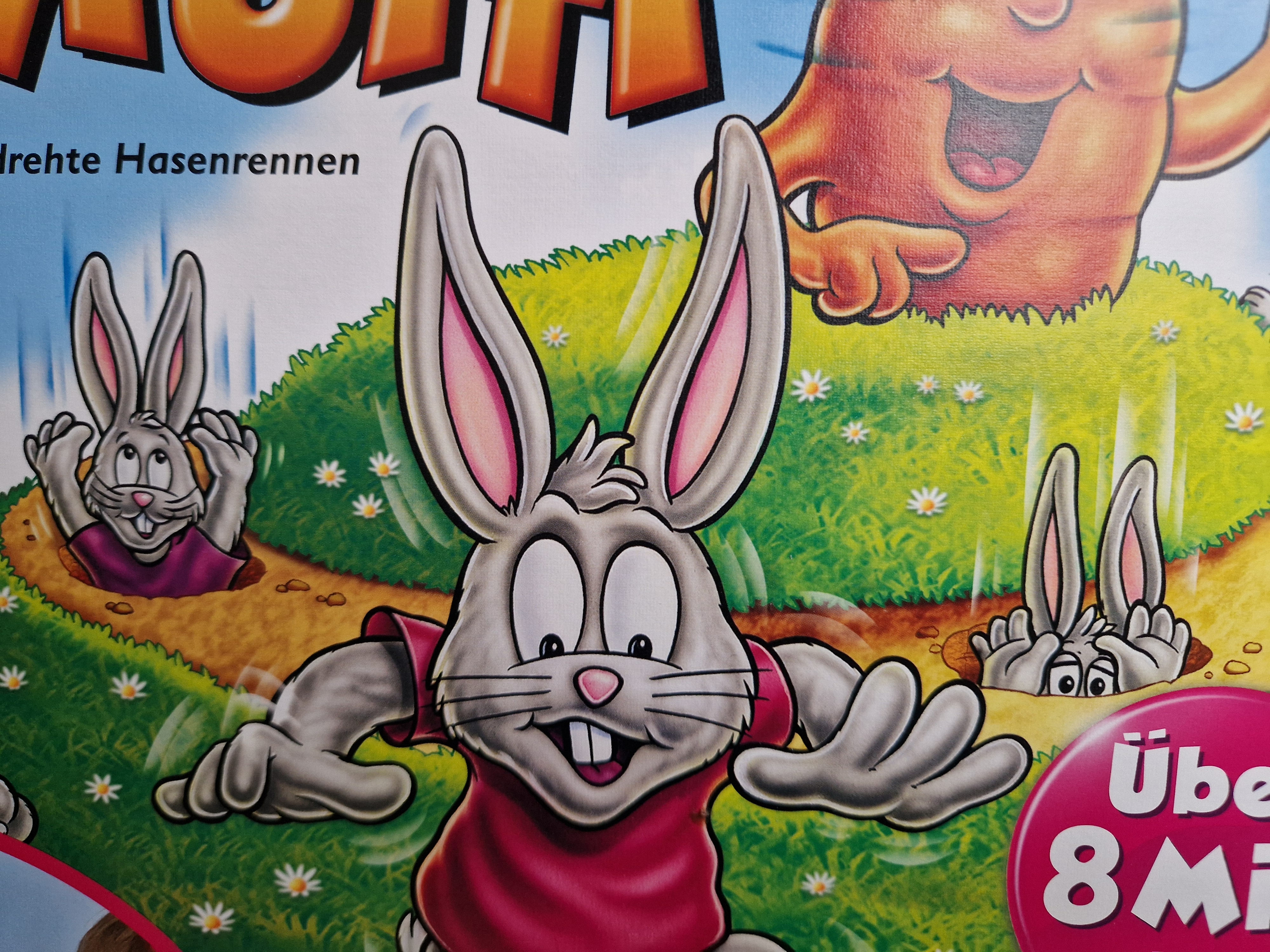 Ziel ist die saftige Karotte oben auf dem Hügel. Aber der Weg dorhin ist voller Überraschungen. Unterwegs öffnen sich plötzlich Löcher - und plumps fällt der eine oder andere kleine Hase hinein ... und ist verschwunden.