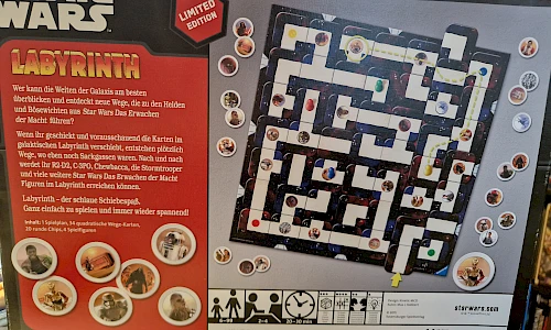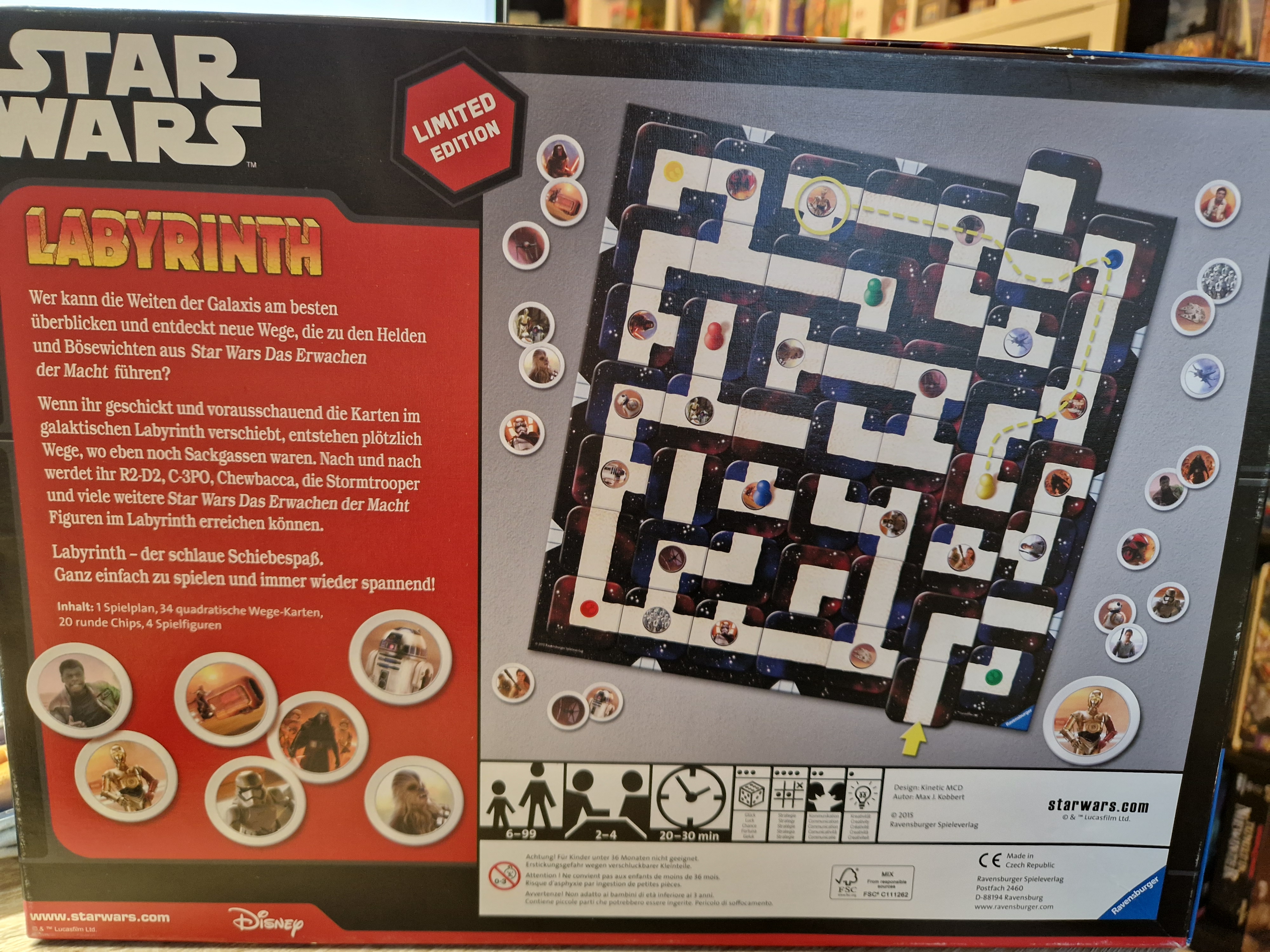 Wer kann die Weiten der Galaxis am besten überblicken und entdeckt neue Wege, die zu den Helden und Bösewichten aus Star Wars das Erwachen der Macht führen? Wenn ihr geschickt und vorausschauend die Karten im galaktischen Labyrinth verschiebt, entstehen plötzlich Wege, wo eben noch Sackgassen waren. Nach und nach werdet ihr R2-D2, C-3PO, Chewbacca, die Stormtrooper und viele weitere Star Wars Figuren im Labyrinth erreichen können.