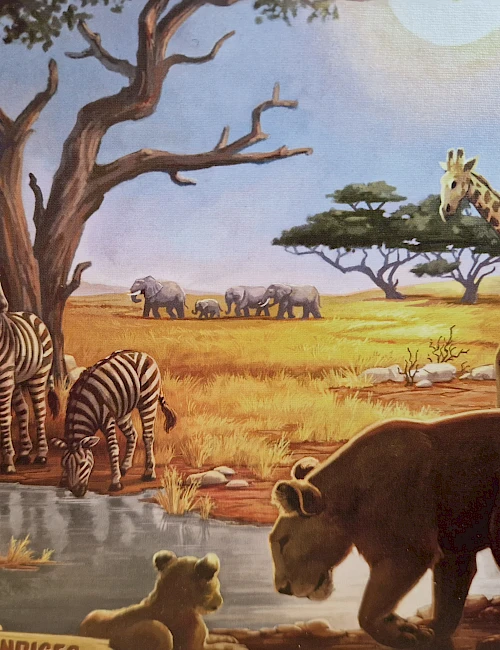 Begebt euch in die Steppe Afrikas und haltet Ausschau nch Affen, Löwen, Zebras, Elefanten und Giraffen. An den Wasserlöchern findet ihr sie alle versammelt.