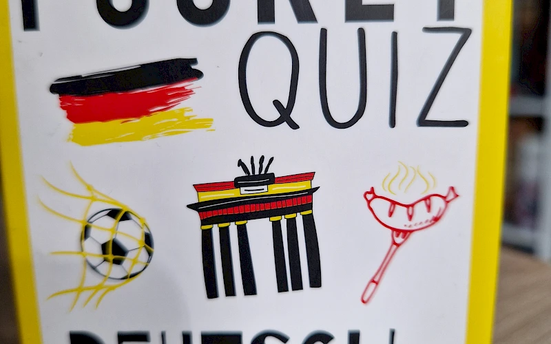 WeiterlesenPocket Quiz Deutschlandab 12 Jahren1 Spieler2 Spieler3 Spieler4 Spieler5 Spielermehr als 5 Spielerunter 30 Min150 Fragen für alle die ihr Deutschland-Wissen auf die Probe stellen wollen.Alter: ab 12 JahrenSpieleranzahl: 1 - ???Spieldauer: solange ihr wollt