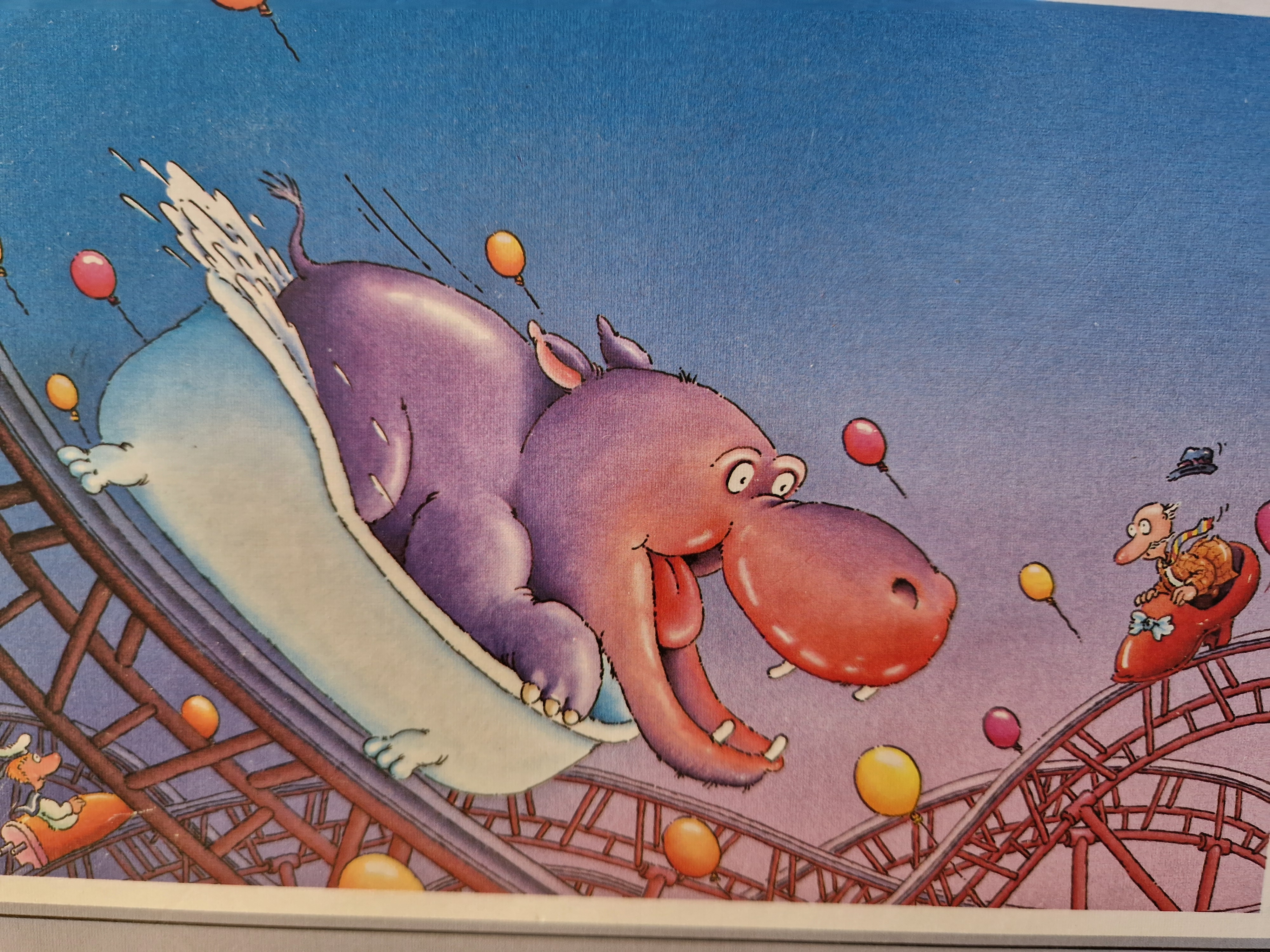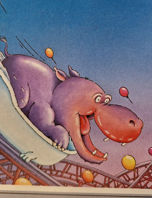 ... und dann nichts wie losgebraust! Schließlich ist nicht jeden Tag ein turbulentes Wettrennen von Nilpferden in einer Achterbahn angesagt. Und wer möchte das nicht gewinnen?