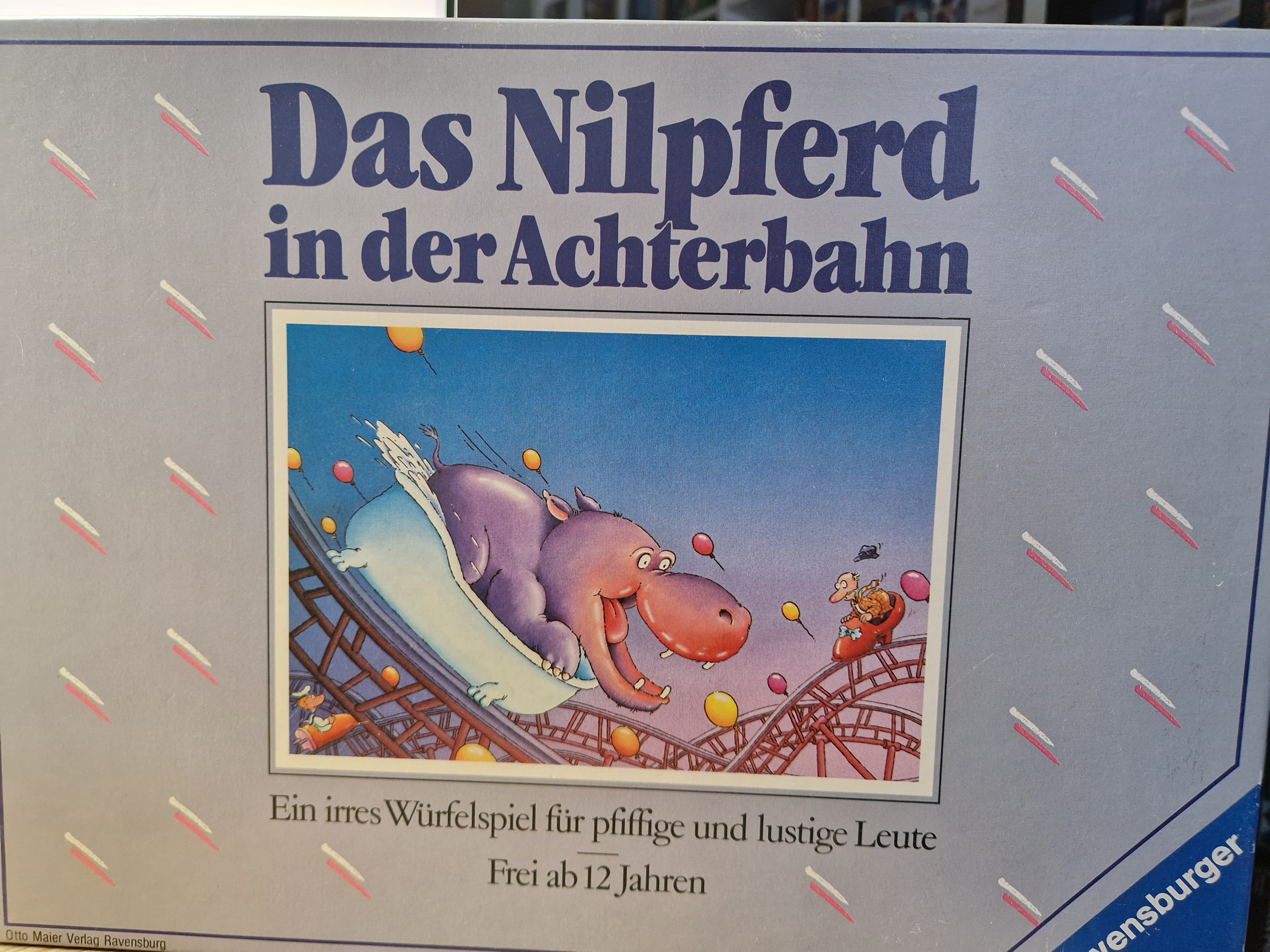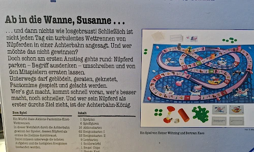 Doch schon am ersten Anstieg gehts runed: Nilpferd parken - Begriff ausdenken - umschreiben und von den Mitspielern erraten lassen. Unterwegs darf geblödelt, geraten, geknetet, Pantomime gespielt und gelacht werden. Wer's gut macht, kommt schnell voran, wer's besser macht, noch schneller. Und wer sein Nilpferd als erster durchs Ziel zieht, ist der Achterbahn-König.