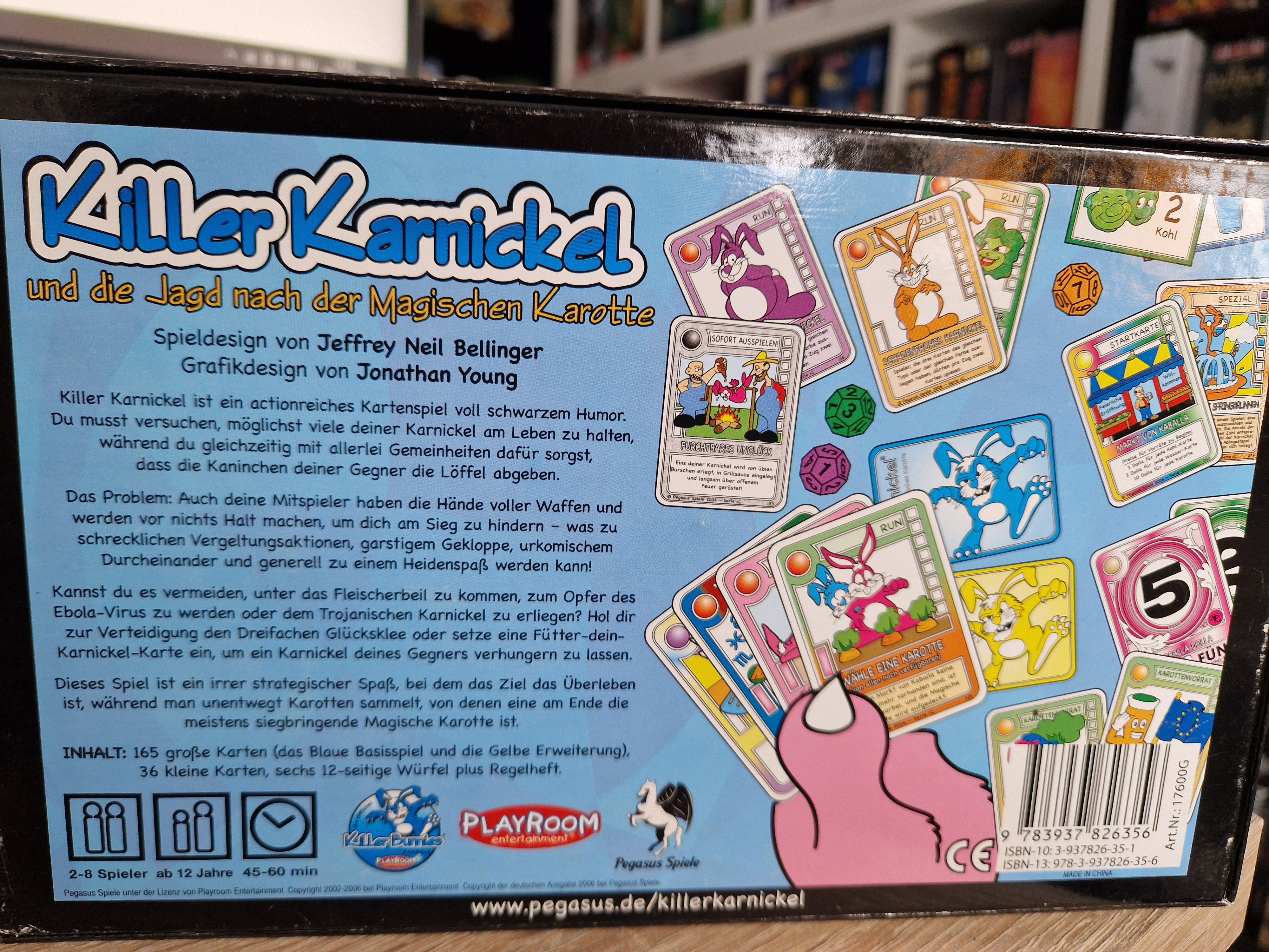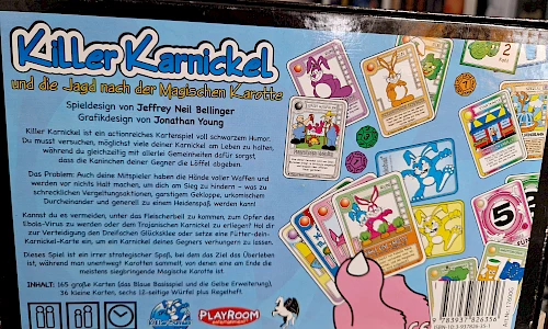 Killer Karnickel ist ein actionreiches Kartenspiel voll schwarzem Humor. Du musst versuchen möglichst viele deiner Karnickel am Leben zu halten, während du gleichzeitig mti allerleit Gemeinheiten dafür sorgst, dass die Kaninchen deiner Gegner die Löffel abgeben.