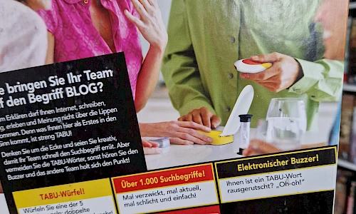Denken sie um die Ecke und seien sie kreativ, damit ihr Team schnell den Suchbegriff errät. Aber vermeiden sie die Tabu-Wörter, sonst hören sie den Buzzer und das andere Team holt sich den Punkt.